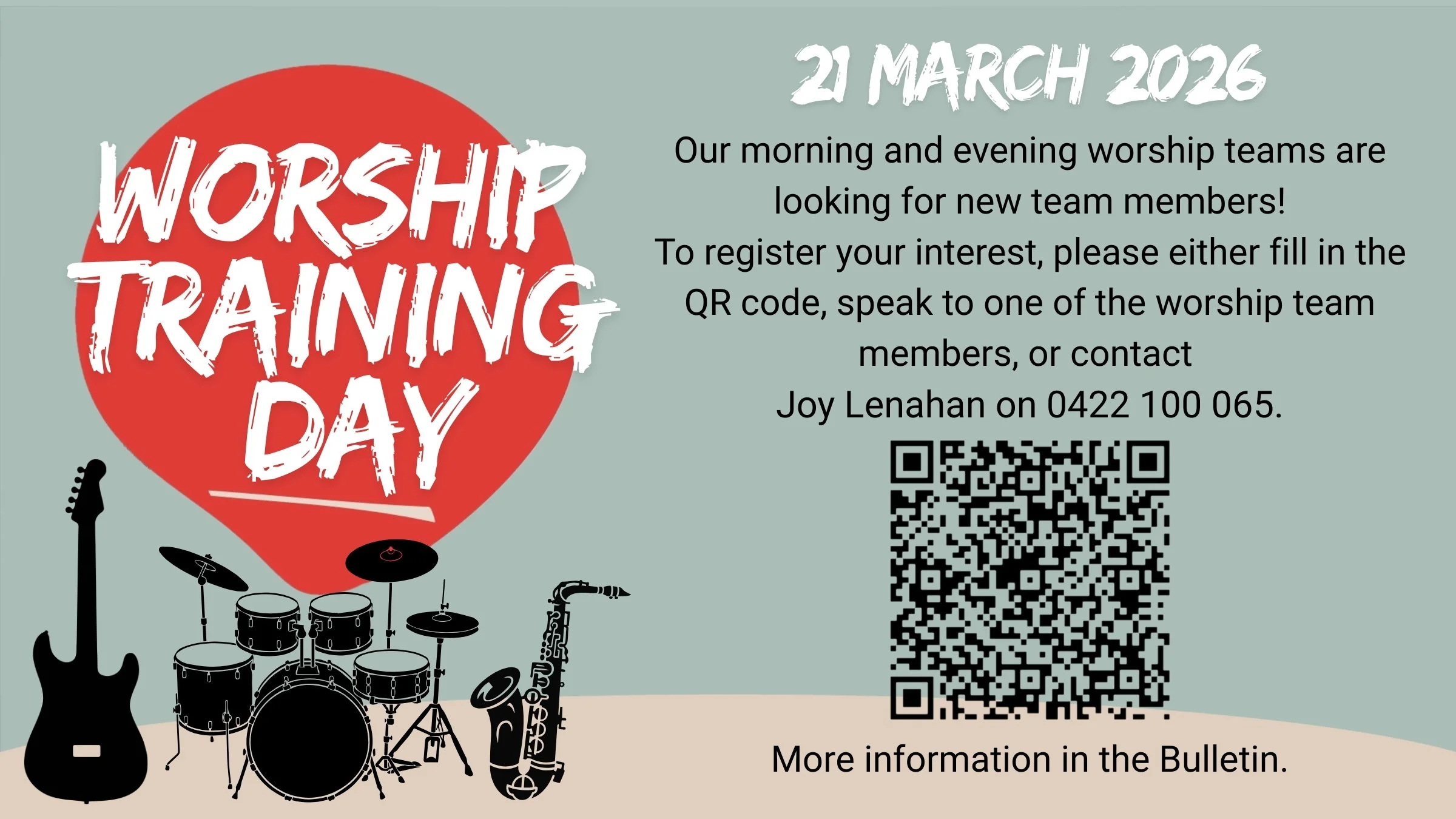 Our next worship training day will be on the 21st of March at 9am. Current team members please save the date now. Anyone who is interested in finding out more about our worship and tech teams (including PC, PA, and video) is welcome to join us.
