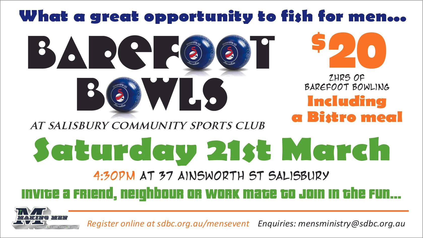 What a great opportunity to fish for men… At Salisbury community sports club. Saturday 21st March